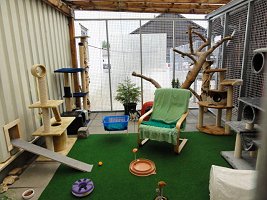 Ein kleiner und ein größerer Raum mit Freigehege stehen den Katzen nach